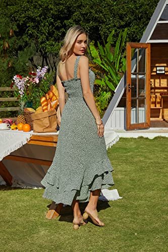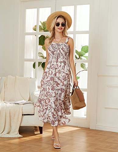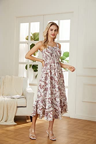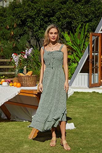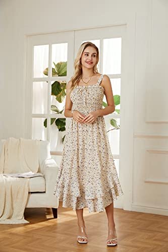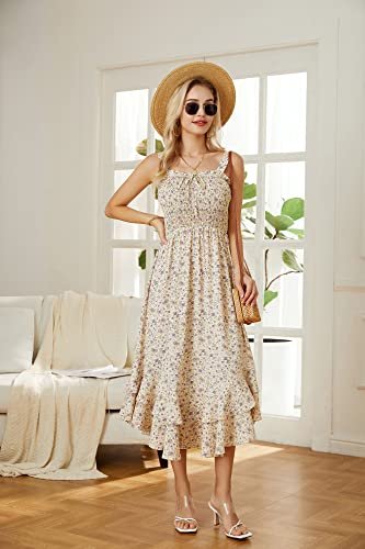 - 🔶[Designpoäng] Smockat liv med rosett, ankellängd, fyrkantig hals, breda axelremmar, dubbla lager fåll och vackra blommor gör den enkla klänningen mer flödande.