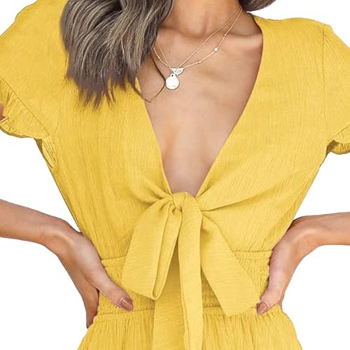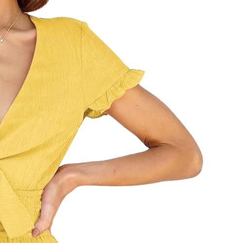 - UNIK DESIGN: Kortärmad miniklänning för kvinnor/V-ringad A-linjeklänning för kvinnor/Kort klänning för kvinnor/smockad midja swingklänning med foder/skridskoklänning för kvinnor/ruggade fåll chiffongklänning/lager solklänning för strand/passform och utsvängningsklänning för kvinnor/kort hemkomstklänning för tonåringar/ festklänning för kvinnor/strand