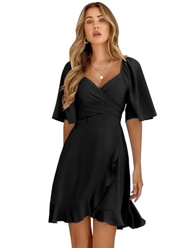 GRECERELLE Dam kortärmad gunga vardaglig klänning dam sommarklänningar A Line solklänning, Aprikos, M