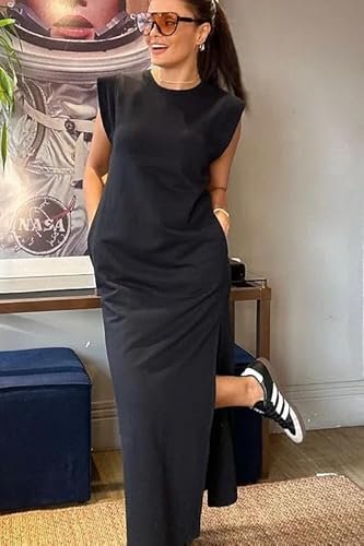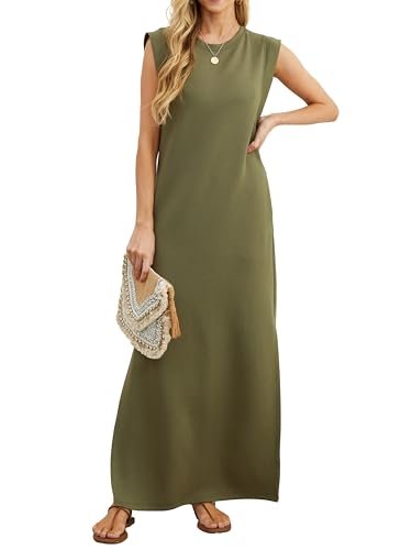 - Solbelyst omfamning: Den runda halsen skapar en intim omfamning av solljuset, en väv av strålar som fångar sommarsolens essens och betonar maxiklänningens distinkta stil.