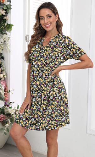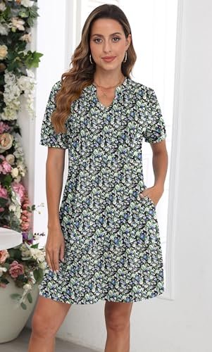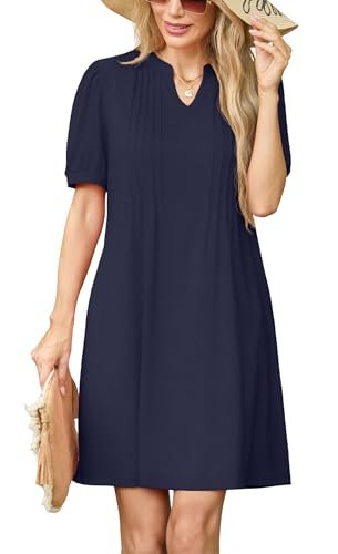 GRECERELLE Damklänningar sommar vardaglig kortärmad v-ringad skiftklänning för...