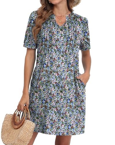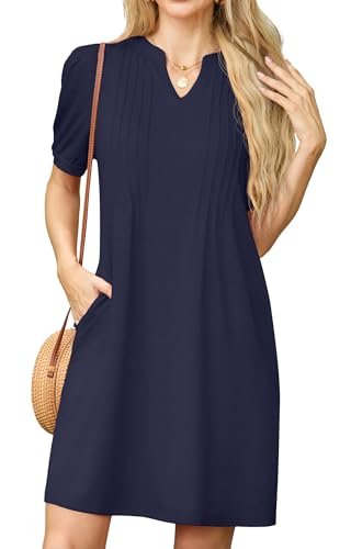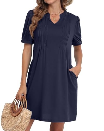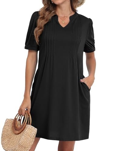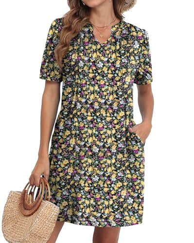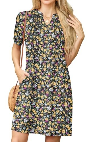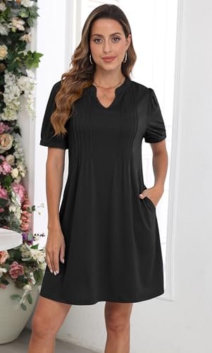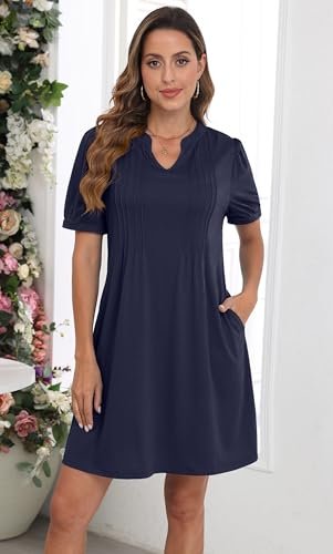 - Stilfull design: mjukt tyg, veck med stift på bysten, hakhalsringningen, andningsbara korta ärmar, krymper inte, med fickor, den löst sittande skiftdesignen, alla dessa detaljer är noggrant designade av oss för att välkomna sommarsäsongen!