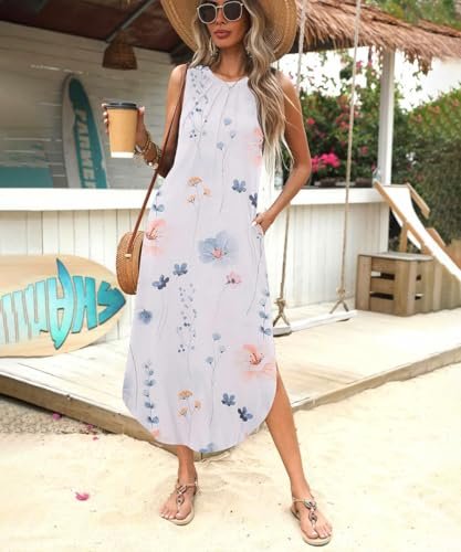 GRMLRPT Ärmlös maxiklänning med rund urringning klänningar blommor...