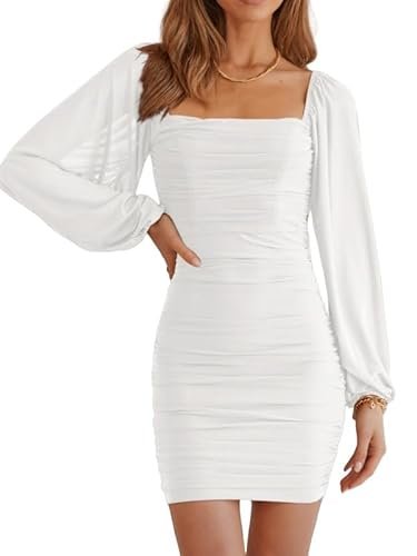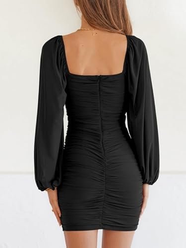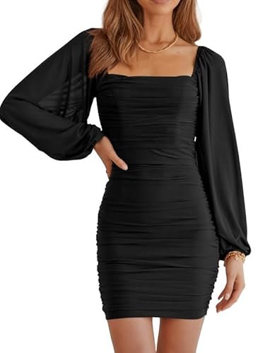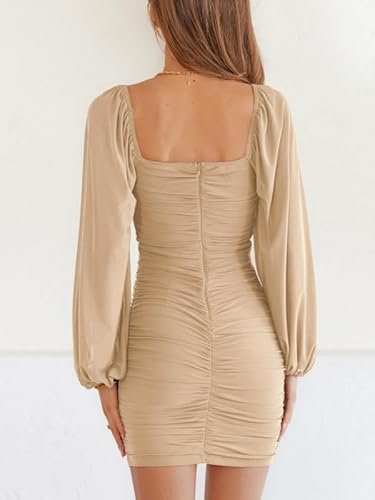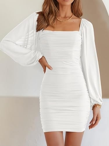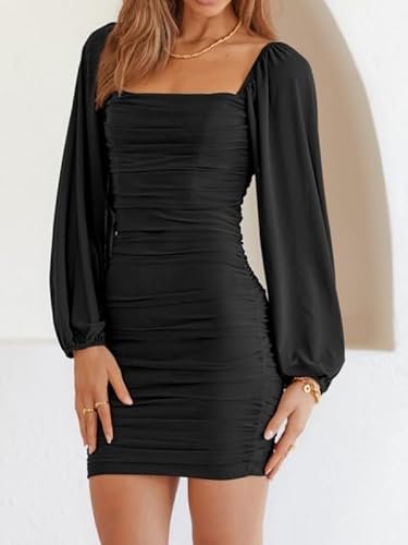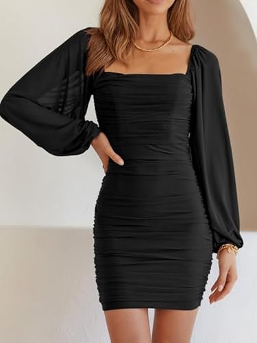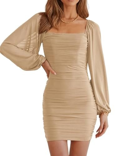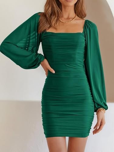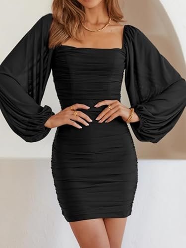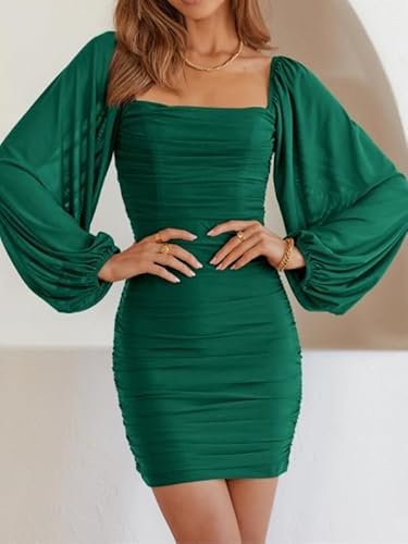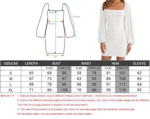 - 🍑 Rynkad och smal design – Den här rynkade bodycon-klänningen är figursydd, framhäver din sexiga kroppsform och gör dig mer självsäker. Denna bodycon-bodycon-klänning med volanger är mer visuellt åtsittande. Den enfärgade klänningen med volangärmar är enkel och generös, förtrollar och låter dig visa upp din vackra kroppsform på våren, sommaren, hösten och vintern.