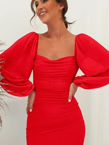 - 🍑 Funktioner: Långa nätlyktärmar, fyrkantig krage, dold dragkedja bak, enfärgad, med elastiskt band på axlar/ärmar, modenätmaterial och dubbelt foder för att se igenom, elastisk, rynkad design fram och bak.