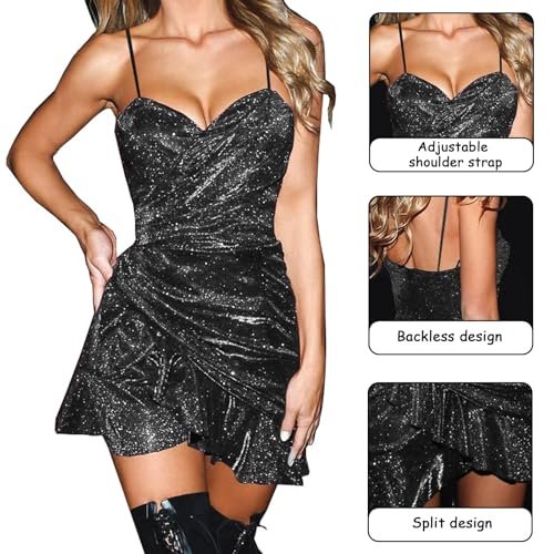 - Design: Figurnära miniklänning med spagettiband och glittrande paljetter som framhäver ditt förtrollande nyckelben och frisätter din charm. Den öppna ryggen framhäver din känsliga rygg perfekt och hjälper dig att skapa en sexig och glamorös look på nattklubben.