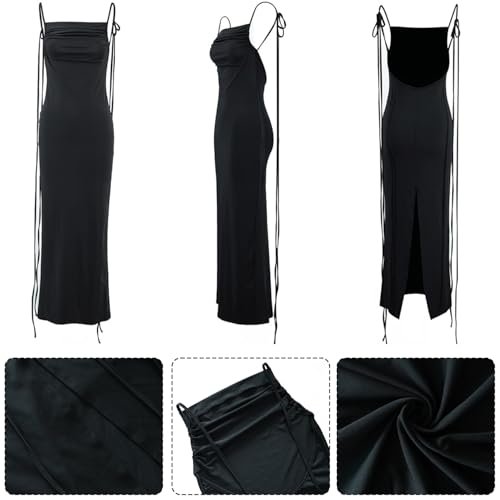 - Utsökt design: Denna klänning med smala remmar accentuerar axlar och nyckelben. Den rygglösa och delade designen passar din kropp perfekt, det är det perfekta valet för alla kvinnor som vill känna sig sexig och självsäker.