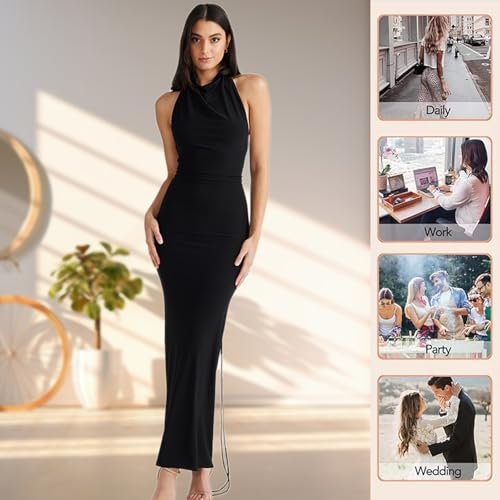 - ☻【Stil】Sexig och elegant ärmlös lång klänning för kvinnor och kvinnor, golvlängd smal design för att ändra din kroppskurva, vilket gör att du ser smal och charmig ut. Den här klänningen kan bäras på två sätt, du kan bära den som en klänning med tunna remmar eller som en ankellklänning, den här är som att äga två kläder!
