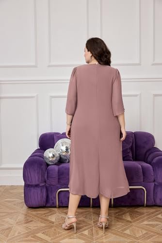 Fin stil: Plusstorlek tvådelad chiffongklänning har slits åt sidan armar på överlägget visar bra temperament och gör att du ser fantastisk ut i vardagen, denna plusstorlek smickrande midi-klänning dekorerar dina armar och överkropp.
