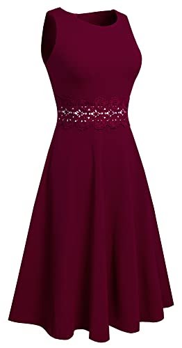 HOMEYEE Dam vintage rund hals blommor broderad knälång...