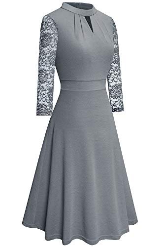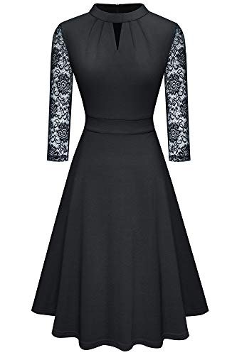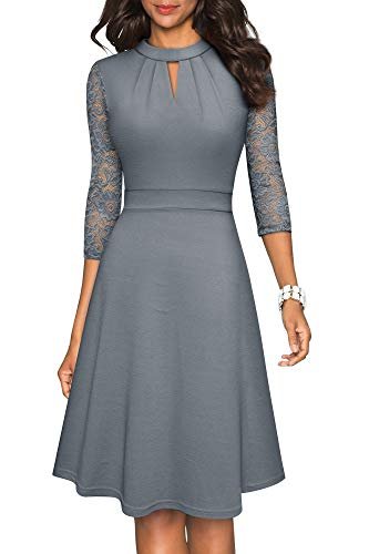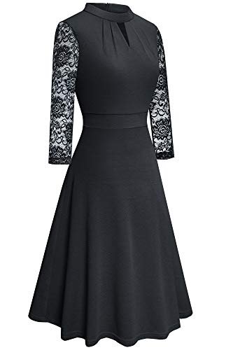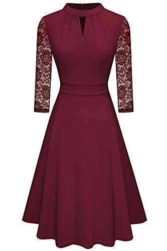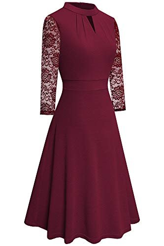 Egenskaper: 3/4-ärm, rund hals, blommigt spetslappverk, ihålig design, veckad, utsvängd, knälängd, osynlig dragkedja på baksidan