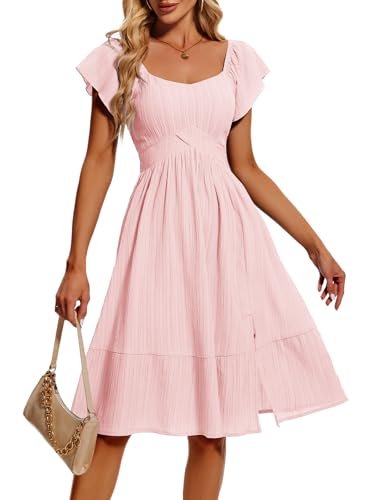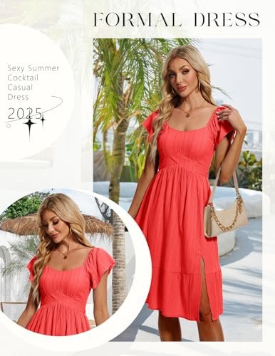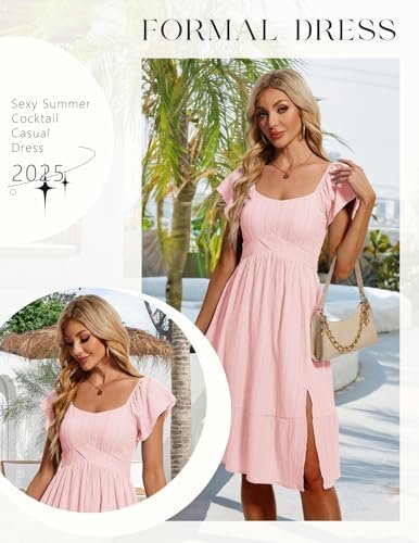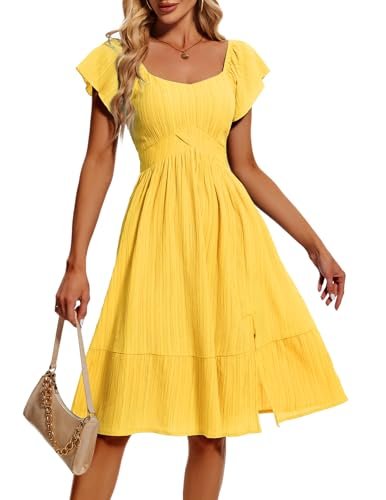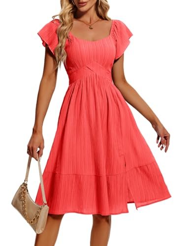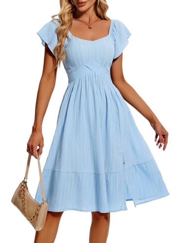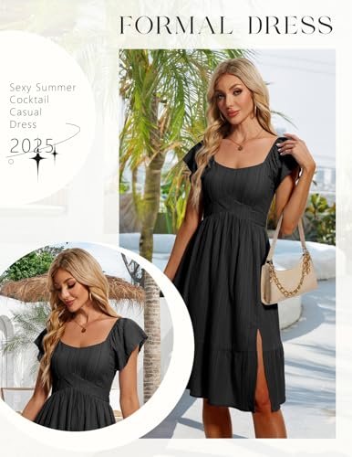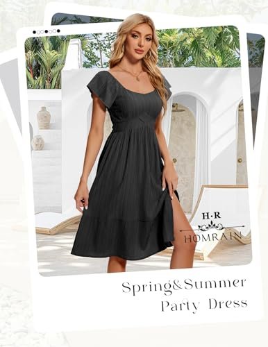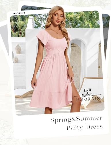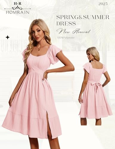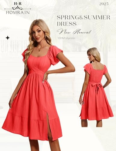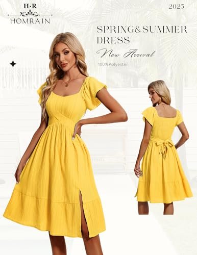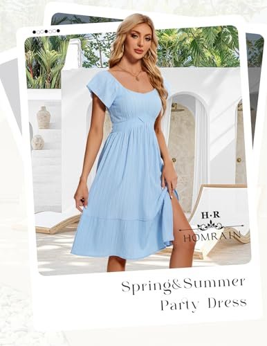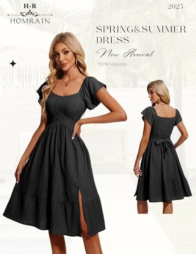HomRain Vardagliga midi-klänningar för kvinnor, fyrkantig hals, delad...