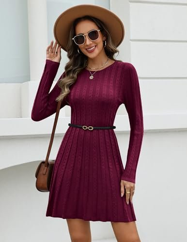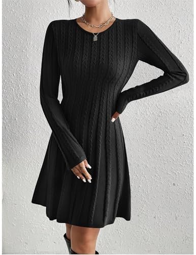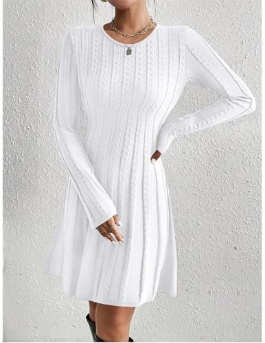 Egenskaper: Tröjklänning dam vinter A-linje, rund hals, ribbade manschetter och fåll, långa ärmar, knälång, enfärgad, a-linje, flätmönster i midjan. Denna vinterklänning för damer, höstklänning för damer passar varje figur.