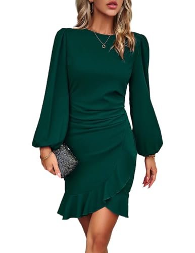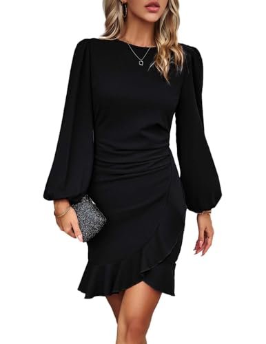 HUXRAKV Dam eleganta affärsklänningar långärmad bodycon volanger puffärmar...