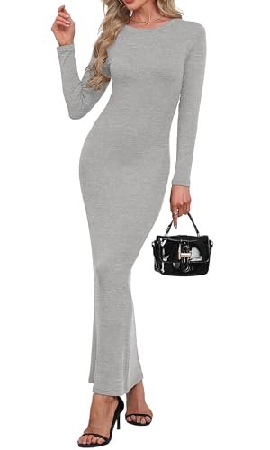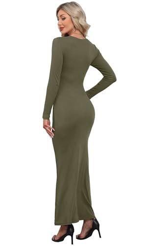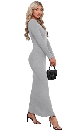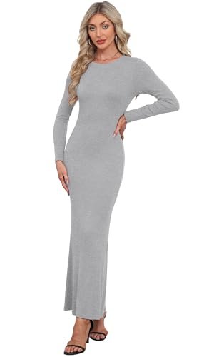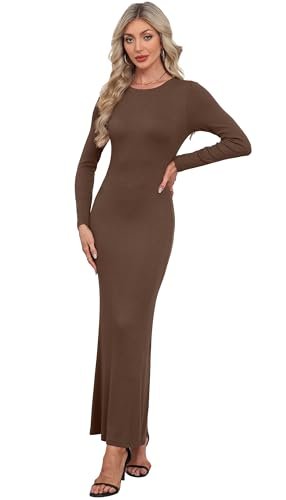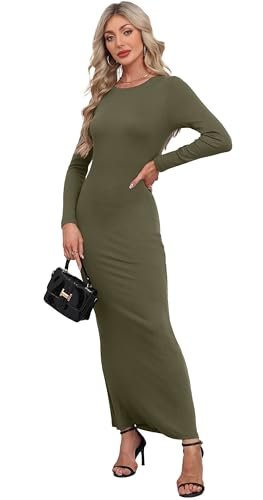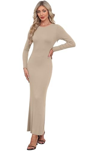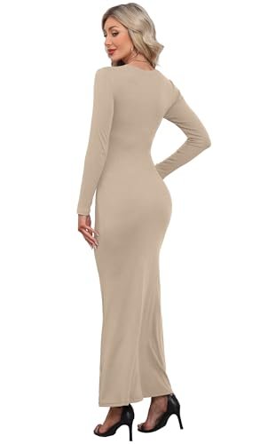 IWOLLENCE Bodyconklänning damer långärmad maxiklänning elegant figurnära ribbad...