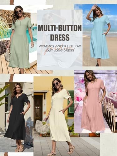 Avslappnad strandklänning: Denna eleganta eleganta och eleganta maxiklänning för kvinnor definierar din stil tack vare den unika kombinationen av V-ringning, sofistikerad knappstängning och bohemisk charm, vilket gör den till det perfekta valet för alla kvinnor som letar efter stil och komfort.