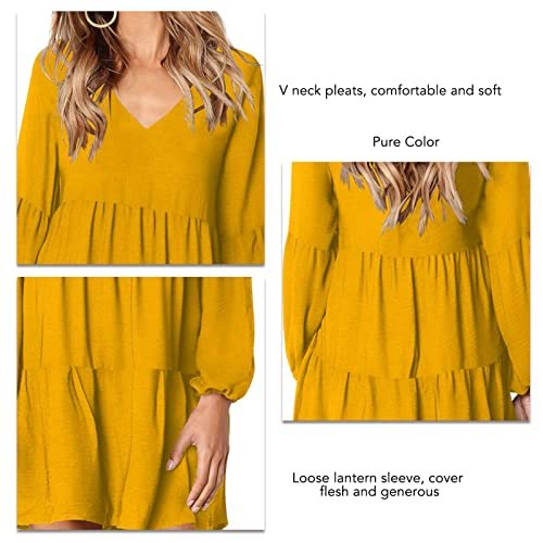【Med veckad fåll】Den överlappande volangdesignen gör den här klänningen söt och mer modern. När du tränar din klänning ser den här klänningen mycket slät och vacker ut. Lykthandtagets utformning kan täcka överflödigt armkött, vilket gör dig mer elegant och elegant