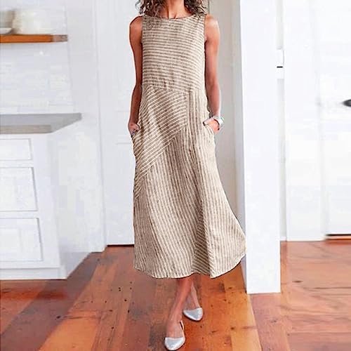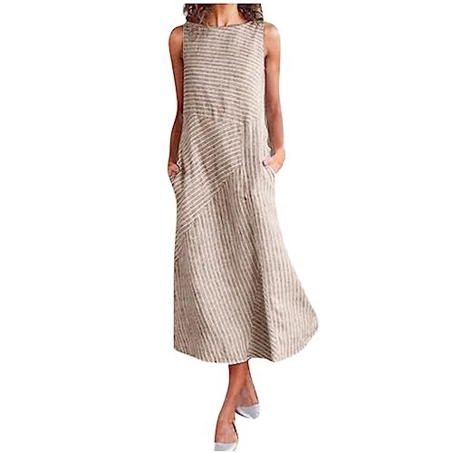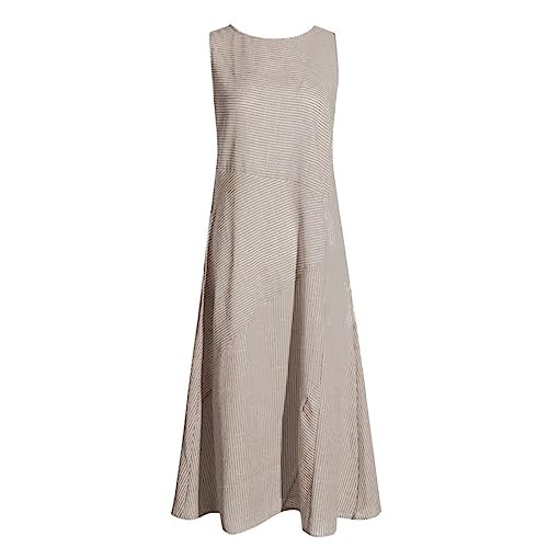 Kanpola dam linneklänning ärmlös rund hals swing tank-klänning...