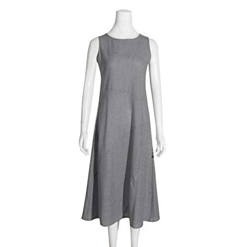 Kanpola dam linneklänning ärmlös rund hals swing tank-klänning...