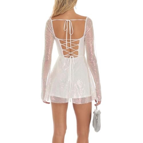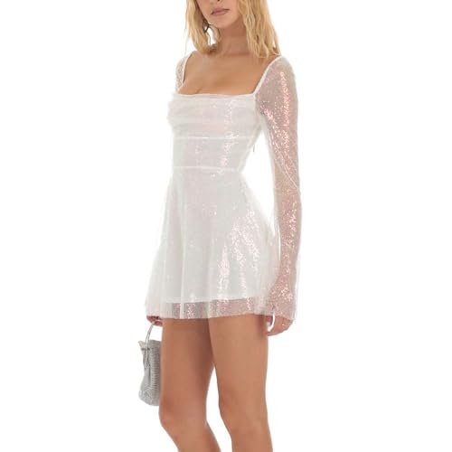Kanpola klänningar dam elegant långärmad A-linje aftonklänning glitter...