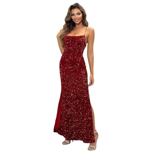 Kanpola paljettklänning dam eleganta långa balklänningar sexiga spagettiremmar...