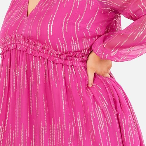 - Långärmad. Denna chiffongklänning för kvinnor från Lovedrobe kollektionen. showcases långa ärmar, en V-hals och en rund rund runt på inverterad V-formad empiremidja. Shimmering metallisk guldtråd elevates denna miniklänning, gör den till ett standout-stycke i din fritidsklädsel.