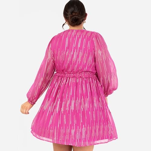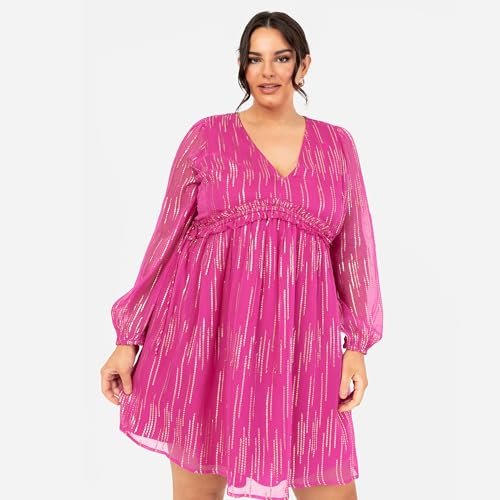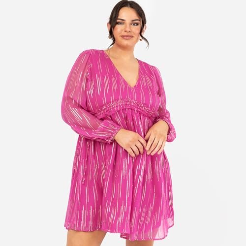 - Långärmad. Denna chiffongklänning för kvinnor från Lovedrobe kollektionen. showcases långa ärmar, en V-hals och en rund rund runt på inverterad V-formad empiremidja. Shimmering metallisk guldtråd elevates denna miniklänning, gör den till ett standout-stycke i din fritidsklädsel.