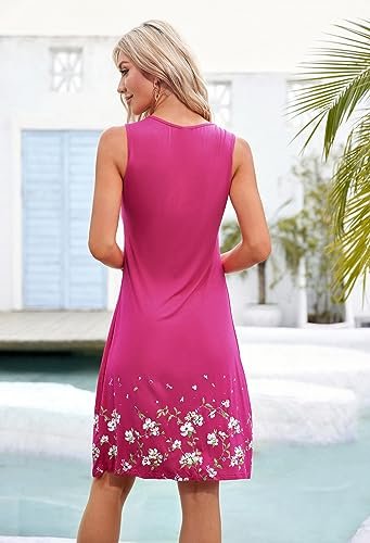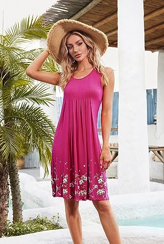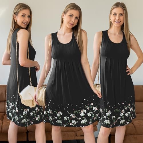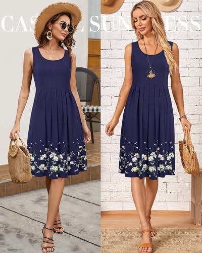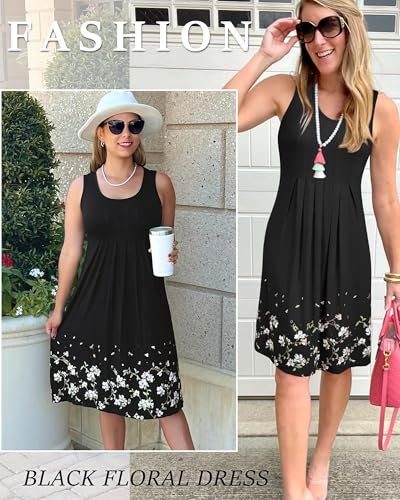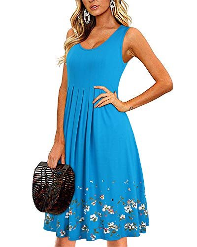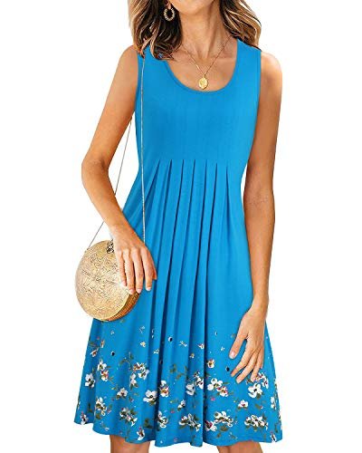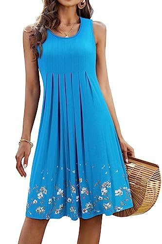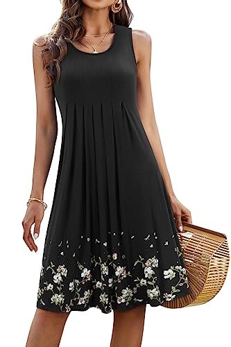Funktioner: Klänningar för kvinnor UK med ärmlös rund hals, solid tank klänning (svart klänning/rosklänning/marinblå klänning/etc.) eller blommiga solklänningar, knälång (över eller under) klänning (beroende på din höjd), avslappnade klänningar för kvinnor