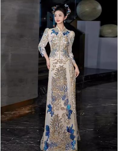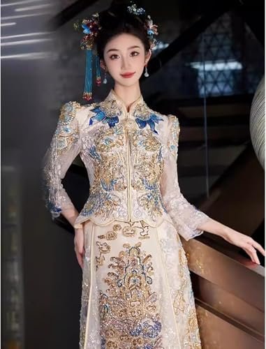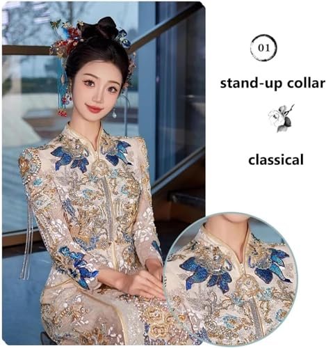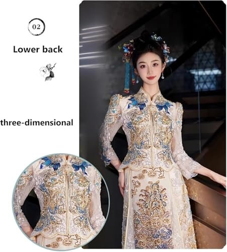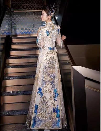 Kinesiska brudklänningar kinesisk bröllopsklänning Xiuhe-klänning Underbara broderade toppar...