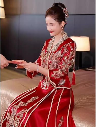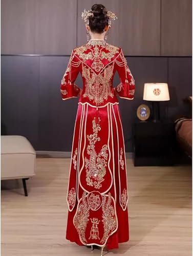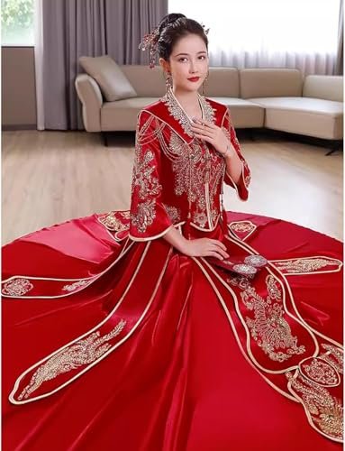 - 【Materialkvalitet】: Denna röda bröllopsklänning är handbroderad, mjuk satin, sidenbroderi. medium i tjocklek, medium i mjukhet, liith i elasticitet och välsittande i formen
