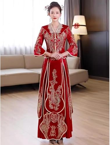 Kinesiska brudklänningar V-ringad sammet kinesisk bröllopsklänning Underbara broderade...