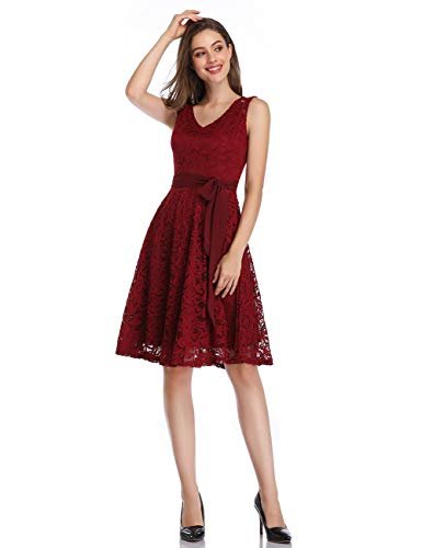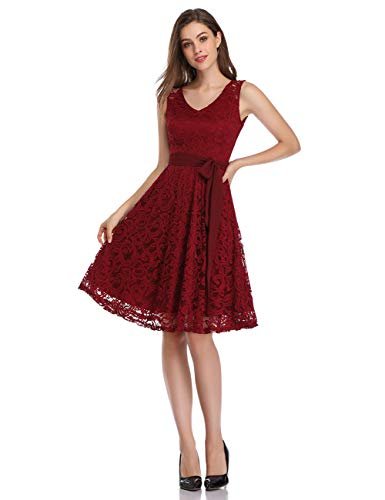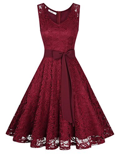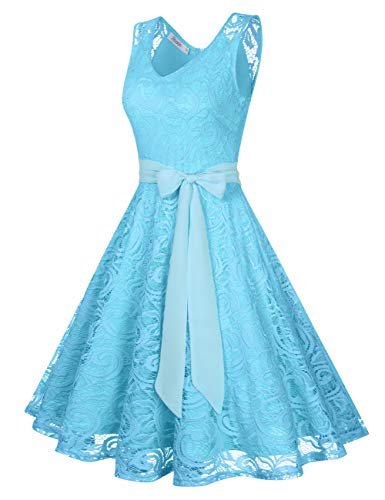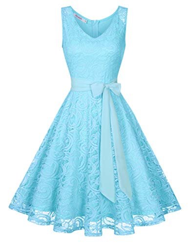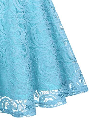 - DESIGN: Retro vintage stil. Mjukt blommigt spetsskikt genomskinligt spets på axeldelen V-ringad knälängd utan arm.