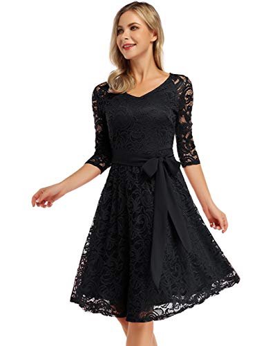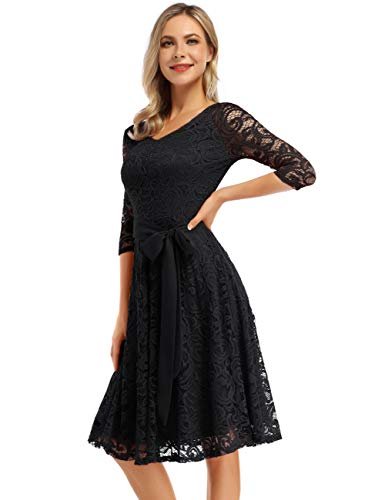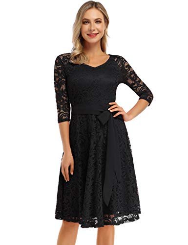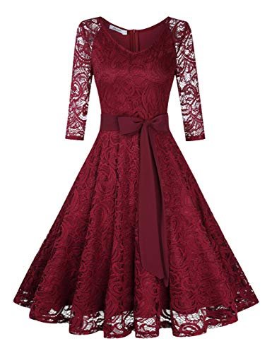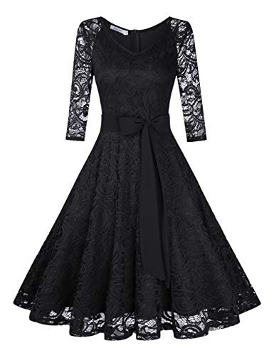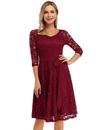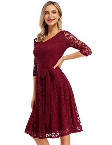 KOJOOIN Damklänning Vintage Brudtärna Klänning KnäLång Långärmad Spets...