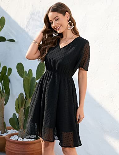 - ⭐Stil – kortärmade volanger. Swiss DotMaterial:A-linjeformad perfekt som vardagsklänning och visar en elegant feminin charm.