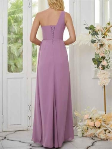 - Funktioner: Högkvalitativ chiffong, en axel, ärmlös, rynkig, hög midja, A-formad, golvlängd, hög sidoslits, volang, ryggstödrem, inbyggd behå, helfoder, plus storlek.