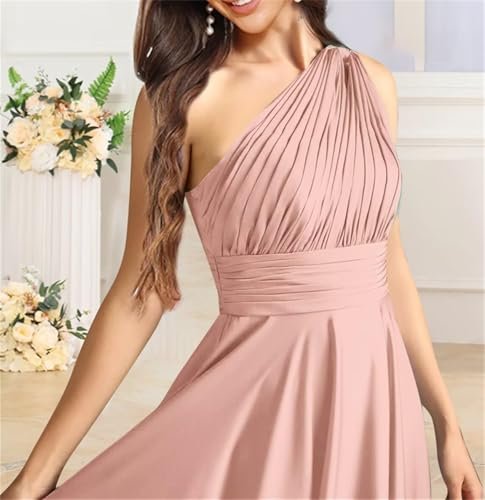 - Funktioner: Högkvalitativ chiffong, en axel, ärmlös, rynkig, hög midja, A-formad, golvlängd, hög sidoslits, volang, ryggstödrem, inbyggd behå, helfoder, plus storlek.