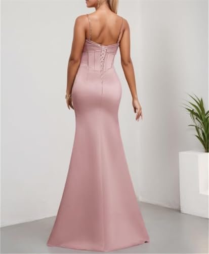Kvinnors satin formella aftonbalklänningar med slits veck jubileumsklänningar...