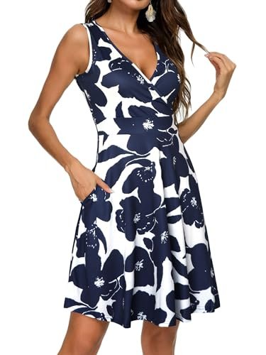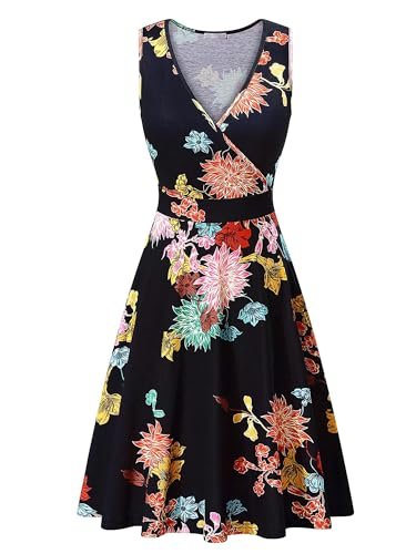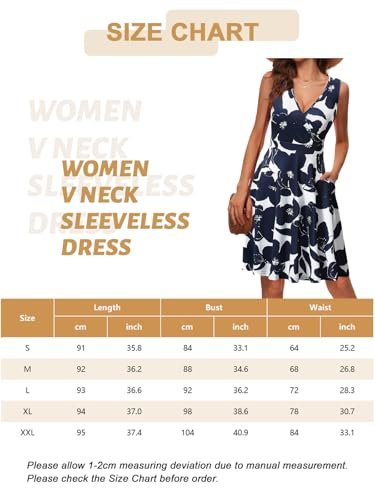 - 【Match】Casual damklänning passar bra med kavaj, jacka, kofta, strumpor, väska, sandaler, högklackade skor och platta skor för att skapa en mängd olika utseende. Längden på denna ärmlösa sommarklänning ligger strax under knäet och passar bra till alla kroppsformer.