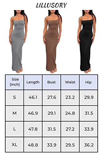 LILLUSORY Womens Bodycon Maxi Dresses 2025 Spring Fashion Summer Casual Long Elegant Classy Sundress Sun Beach Vacation Resort Wear Midi Cocktail Wedding Guest Sexy Party Outfits Clothes