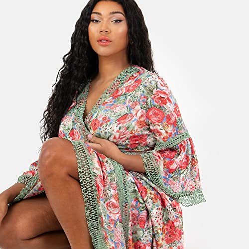 Plusstorlek MIDI sommarklänningar – har en fusklindad hals och en golvsvepande kjol som flyger från midjan vilket ger klänningen en romantisk finish. Den här klänningen för kvinnor är gjord av ett mjukt material, vilket gör att du känner dig som en stjärna.
