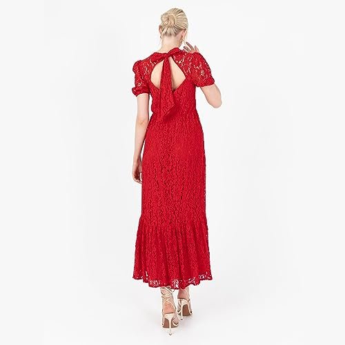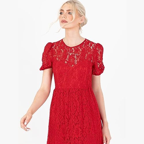 Lovedrobe Midaxi-klänning för kvinnor kortärmad puff spets imperium...