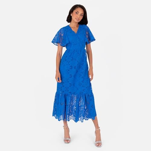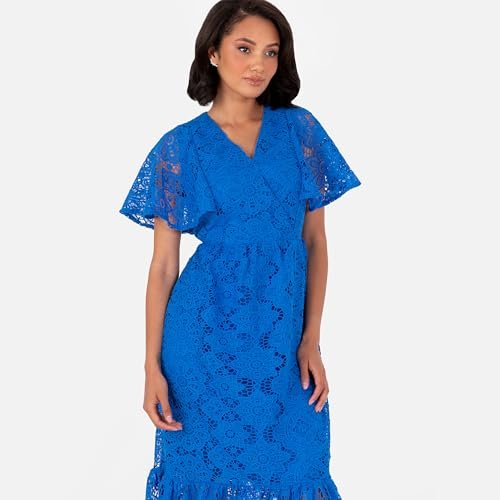 Midaxi klänningar för kvinnor: Lovedrobe presenterar V-ringad, ängelärm spets aftonklänningar. Finns i en underbar blå nyans och i 10 UK/EU storlekar: 8 UK (36 EU), 10 UK (38 EU), 12 UK (40 EU), 14 UK (42 EU), 16 UK (44 EU), 18 UK (46 EU), 20 UK (48 EU), 2 UK (50 EU), 24 UK 52 EU), 26 UK (54 EU).