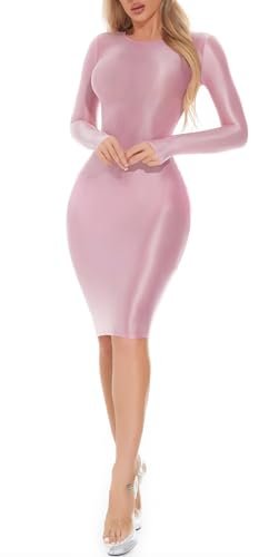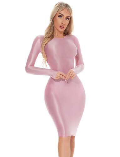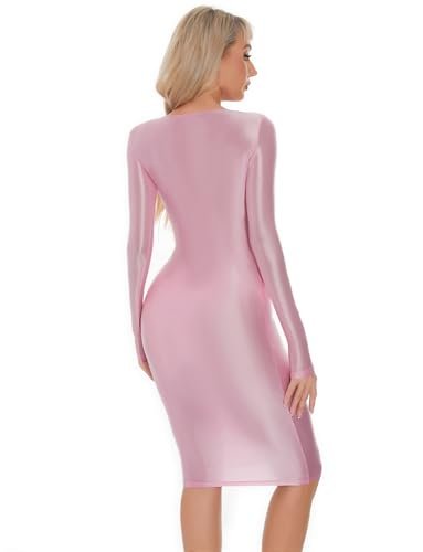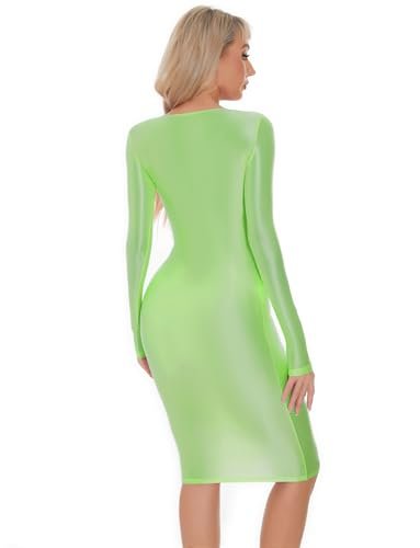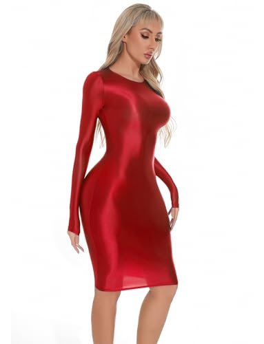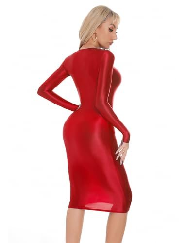 - Design: Denna tunna klänning för kvinnor har långa ärmar och rund hals, enkel och modern. Det glänsande skimmret ser bländande ut i ljuset. Stretchig, tät design betonar kroppskurvorna, sexig och charmig.