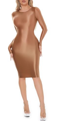 - Material: Denna oljiga och glänsande dampennklänning är tillverkad av 77 % nylon 23 % spandextyg, hudvänlig, andas, bekväm, glänsande och slät.