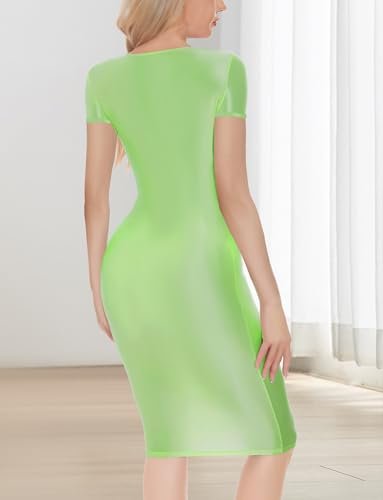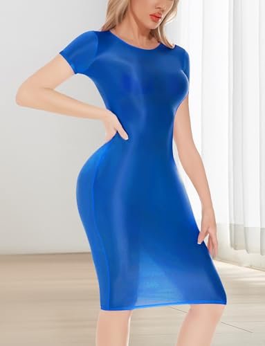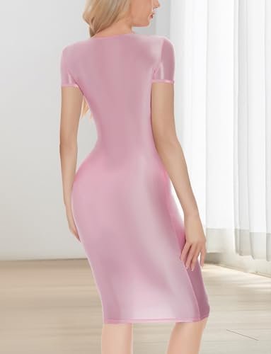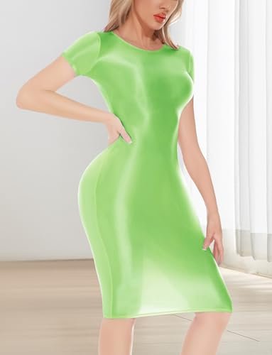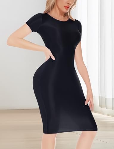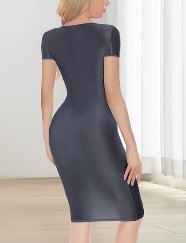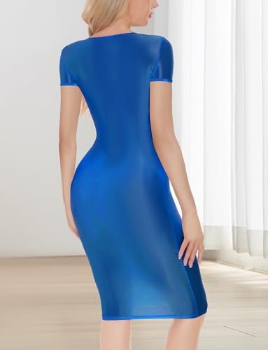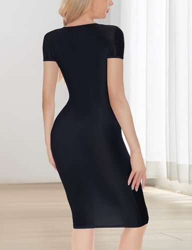 - Material: Denna sexiga oljeglänsande omlottklänning för kvinnor är gjord av mycket elastiskt tyg, hudvänlig och andas, mjuk och bekväm, ser slät och glänsande ut, lämplig för långvarig användning