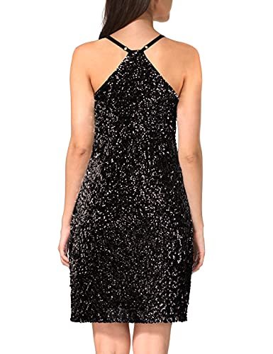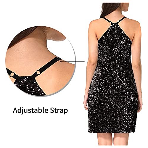 MANER Women's Glitter Sequin Dress Adjustable Spaghetti Strap Sparkle Party Dresses (Black, X-Small)