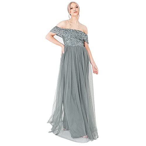 Maya Deluxe Bardot klänning för kvinnor maxi utsmyckad...
