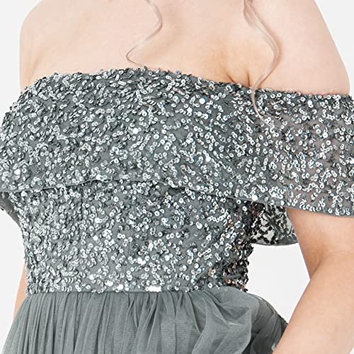 Evenemangsklänningar för kvinnor – presenterar bedårande paljettfinish Bardot-halsringningsklänningar. Finns i 12 UK storlekar– 6, 8, 10, 12, 14, 16, 18, 20, 22, 24, 26, 28 olika färger: vinröd, blå, grå, rosa, grön, marinblå, taupe blush, blekmauve. Välj en favorit för dig själv och dina brudtärnor.