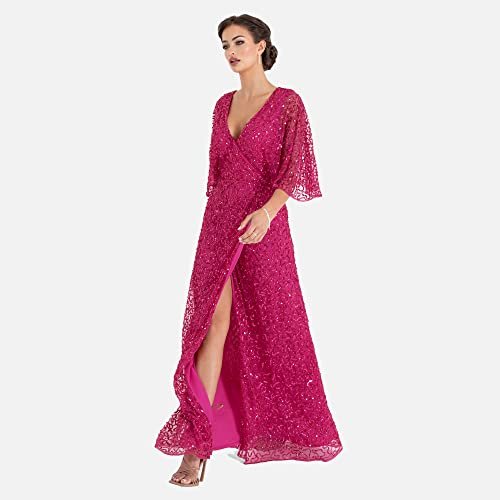 MAXI EVENING KLÄNNINGAR – har en lindningseffekt-livstycke som skapar en V-ringning, i kombination med eleganta mantelärmar och en svepande golvkjol, vilket ger klänningen en romantisk finish.