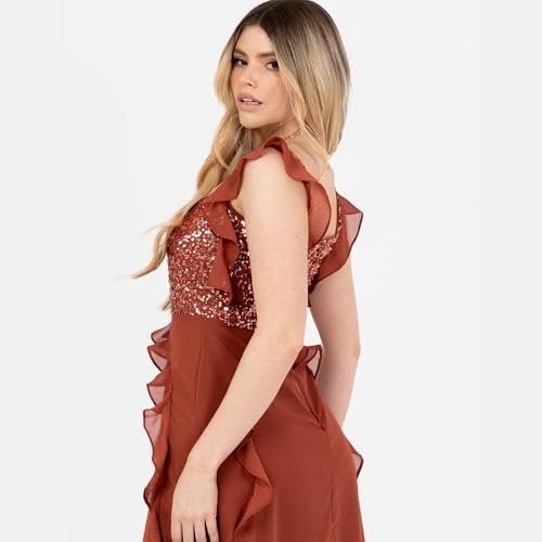 - Förskönade klänningar för kvinnor: Maya Deluxe presenterar fantastiska midaxi-kläder. Finns i en sofistikerad rostfärg och 7 UK/EU-storlekar: 6 UK (34 EU), 8 UK (36 EU), 10 UK (38 EU), 12 UK (40 EU), 14 UK (42 EU), 16 UK (44 EU), 18 UK (46 EU).